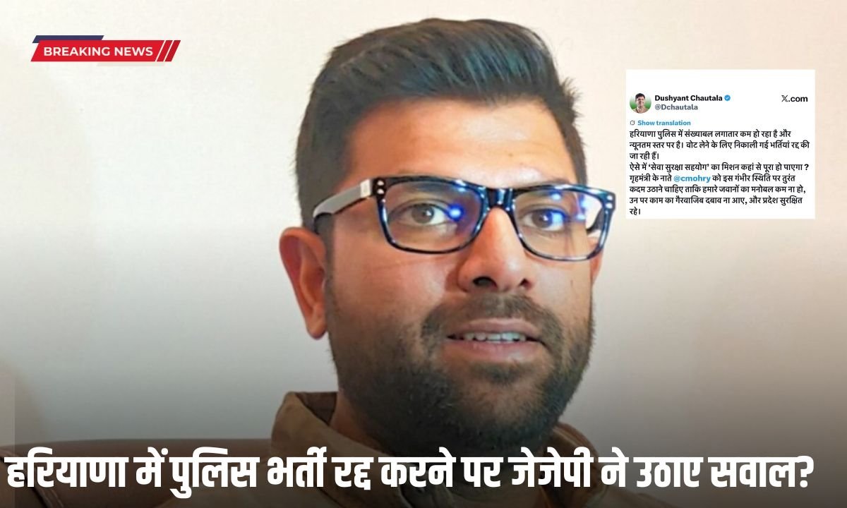 Haryana : हरियाणा में पुलिस भर्ती रद्द करने पर जेजेपी ने उठाए सवाल, पूछा- क्या बीजेपी ने चुनाव में वोट लेने के लिए निकाली थी भर्ती ?