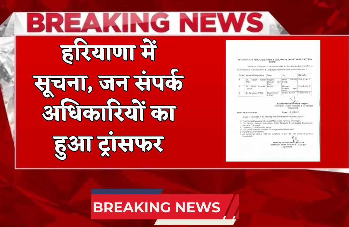 Haryana News: हरियाणा में सूचना, जन संपर्क अधिकारियों का हुआ ट्रांसफर, यहां देखें लिस्ट